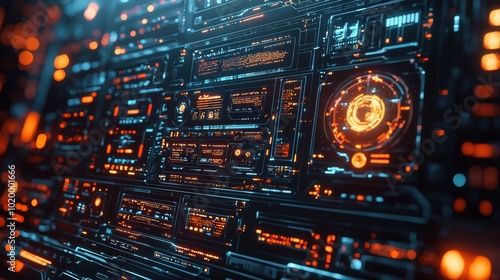© Jiranath, Obraz premium Futuristic Technology Interface in Abstract 3D Art