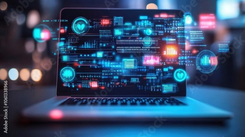Obraz premium Futuristic Technology Interface on Laptop Screen