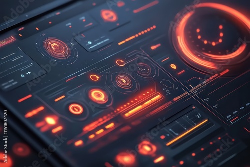 © arri, Obraz premium Futuristic Technology Interface Red Orange Glowing Displays