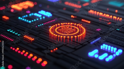 Obraz premium Futuristic Technology Interface with Colorful Neon Elements and Patterns