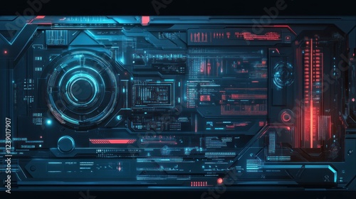 Obraz premium Futuristic technology interface with glowing blue and red elements.