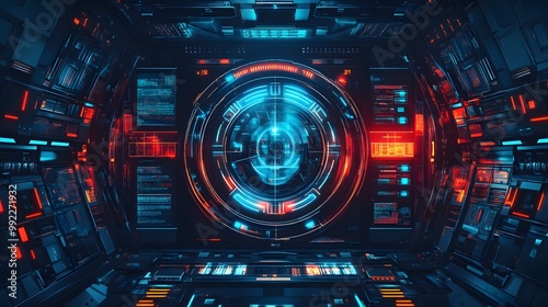 Fototapeta premium Futuristic Technology Interface with Glowing Circular Display