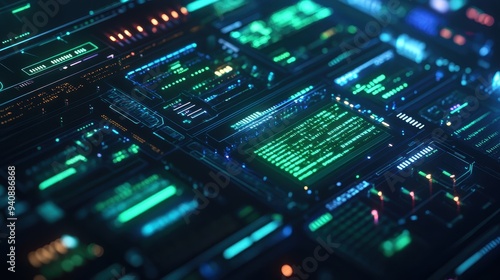 Fototapeta premium Futuristic Technology Interface with Green and Blue Lights - Abstract Digital...