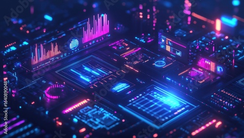 Obraz premium Futuristic Technology Interface with Holographic Elements and Data Visualization