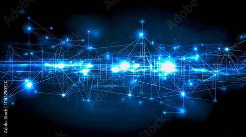 © Fatema, Obraz premium Futuristic Technology Network Background with Digital Connections and Data Flow