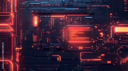 Obraz premium Futuristic Technology Panel Glowing Red Circuitry Design