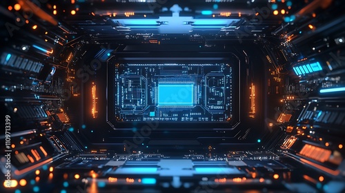 Fototapeta premium Futuristic technology visualized on computer circuit board picture
