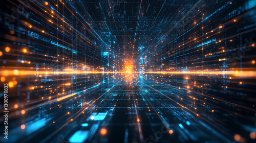 © Derby, Fototapeta premium Futuristic Technology with Blue and Orange Lines and Particles
