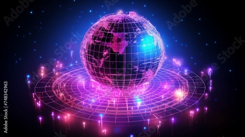 Obraz premium Futuristic telecom satellite orbiting earth with hologram information for...
