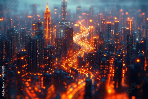 Fototapeta premium Futuristic tilt shift photography exploring surreal urban settings with glowing accents