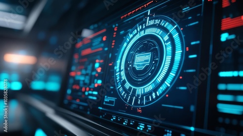 Fototapeta premium Futuristic time-dial, glowing blue, high-tech lab, virtual effect