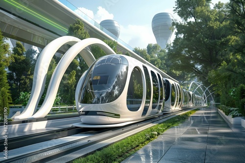 © KP, Naklejka premium Futuristic Train in a Modern City.