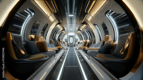 Naklejka premium Futuristic Train Interior, Hyperloop, Transportation, Futuristic Design, Sci-Fi