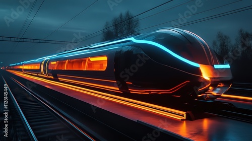 © IQ-Photography, Naklejka premium Futuristic train, motion blur, neon lights, technology, fast transportation, 8k Resolution