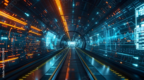 Fototapeta premium Futuristic Transport Hub with Digital Signage and Automated Systems Cyber Background Concept