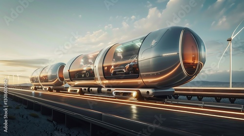 Obraz premium Futuristic Transport System with Sleek Capsules on Elevated Track Under...