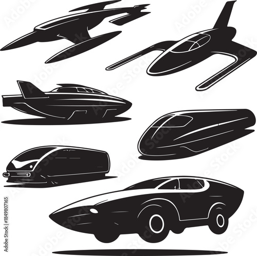 Fototapeta premium Futuristic Transport Vehicle Silhouettes Collection