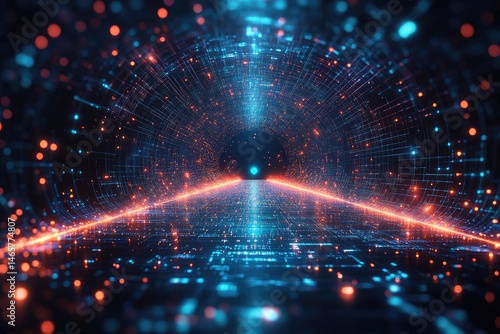Fototapeta premium Futuristic tunnel design with glowing data streams.