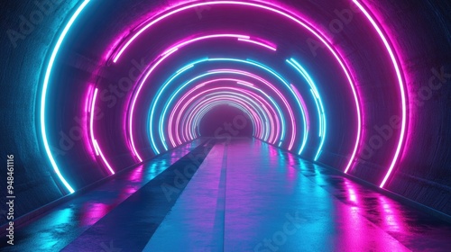 Obraz premium Futuristic tunnel illuminated by vibrant neon blue and pink lights in a 3D...