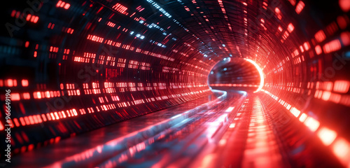 Fototapeta premium Futuristic tunnel illuminated by vibrant red and blue lights, creating a...
