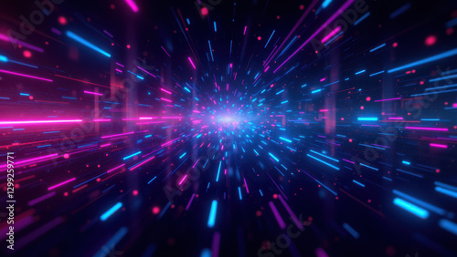Fototapeta premium Futuristic tunnel of stars with vibrant neon lights, perfect for ci/cd or...