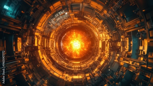 Fototapeta premium Futuristic tunnel with a bright central core