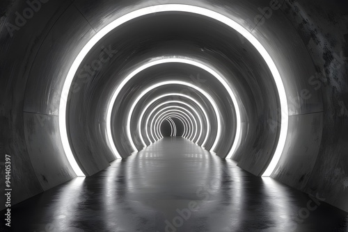 Obraz premium Futuristic Tunnel with Illuminated Circular Patterns