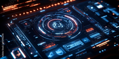Obraz premium Futuristic UI layout designed for space missions, featuring responsive holographic elements, orbit controls, and dynamic celestial visualization