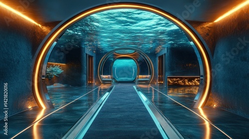 © avila, Fototapeta premium Futuristic underwater tunnel hallway