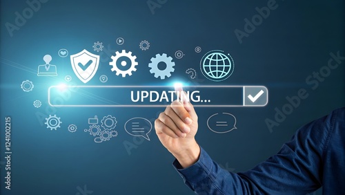 Fototapeta premium Futuristic Update Interface Hand Touching Progress Screen V3