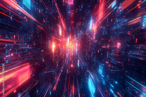 © Kavidu, Fototapeta premium Futuristic Urban Architecture with Neon Lights and Sci-Fi High-Tech Cityscape Design