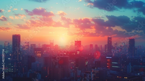 Fototapeta premium Futuristic Urban Dreamscape Bathed in Pink Neon Light at Sunset