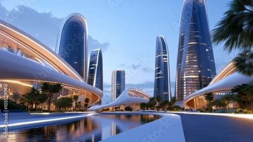 Fototapeta premium Futuristic Urban Environment with Digital Architecture