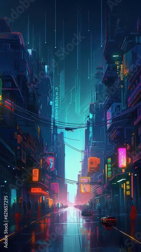 © Михаил Н, Obraz premium Futuristic urban landscape. Generative AI