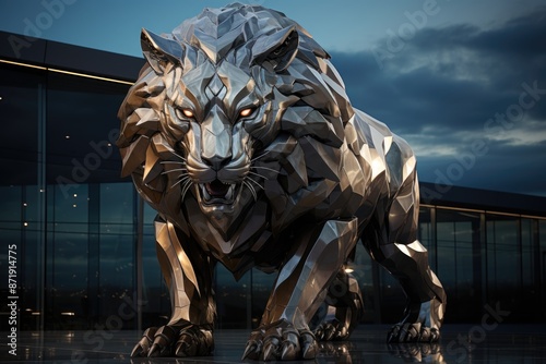 Fototapeta premium Futuristic Urban Leon the elegant synthesis between nature and technology., generative IA