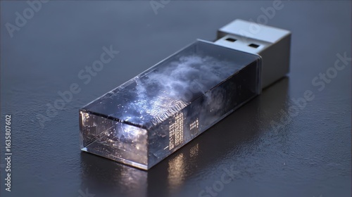 Fototapeta premium Futuristic USB Flash Drive with Cloud Imagery