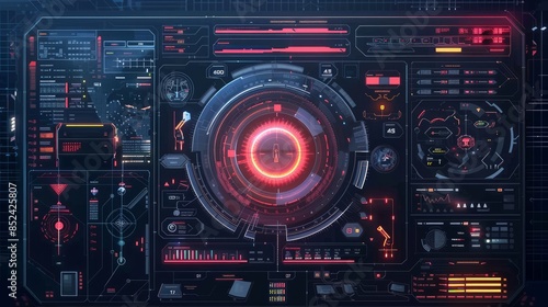 Obraz premium Futuristic user interface elements for a high-tech video game screen.