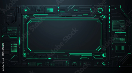 Obraz premium Futuristic user interface featuring blank center screen on dark background.