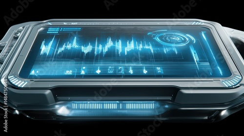 © watchirachat, Obraz premium Futuristic User Interface with Data Visualization and Waveform Analysis on Sleek Display Panel