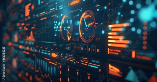 Obraz premium Futuristic User Interface with Glowing Orange and Blue Data