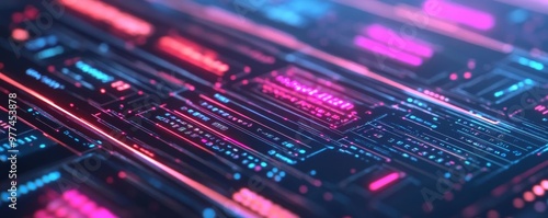 Obraz premium Futuristic UX content management system, glowing text optimization, digital...