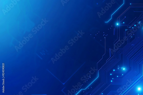 © Abstract, Naklejka premium Futuristic vector illustration of a blue circuit board with intricate digital tech elements, perfect for advanced technology backgrounds.