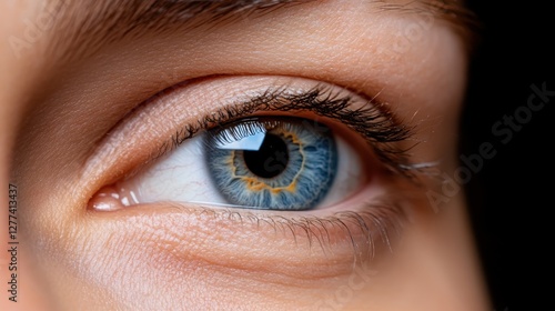 Fototapeta premium Futuristic vision captured in perfect blue eye within a sterile setting