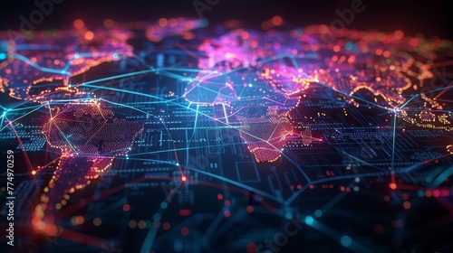 Fototapeta premium Futuristic visualization of a global network with points of light and data...