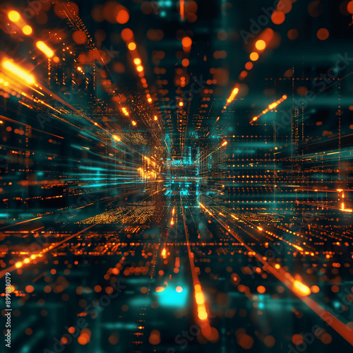 Fototapeta premium Futuristic visualization of glowing data network in cyberspace with neon lights and technology abstraction