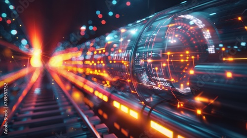 Obraz premium Futuristic vortex tunnel of streaming data and video fluxing blue...