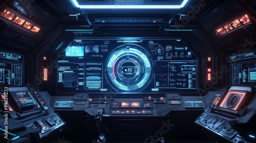 Fototapeta premium Futuristic VR HUD control panel featuring a technology-based head-up display...
