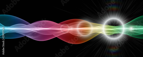 © Frank Rohde, Obraz premium Futuristic wave panorama background design with lights