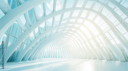 Fototapeta premium Futuristic white architectural interior with arched structural design.