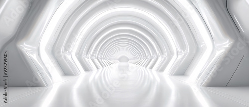Obraz premium Futuristic White Archway Corridor with Bright Light